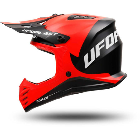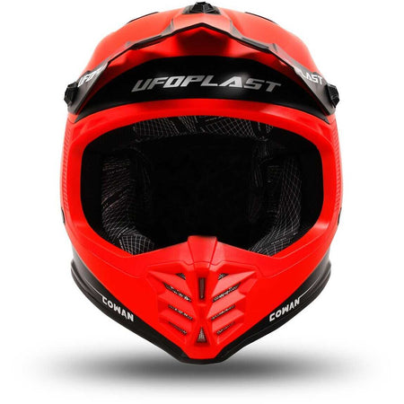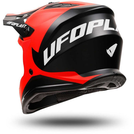 Casco offroad Korey da bambino di Ufo Plast con calotta esterna in resina termoplastica ad altissima resistenza, facile da indossare e togliere