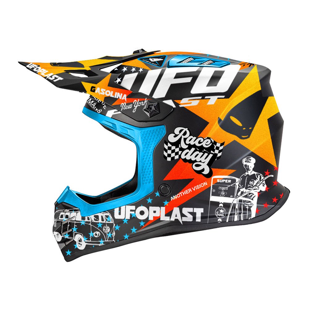 Casco offroad Korey da bambino di Ufo Plast con calotta esterna in resina termoplastica ad altissima resistenza, facile da indossare e togliere