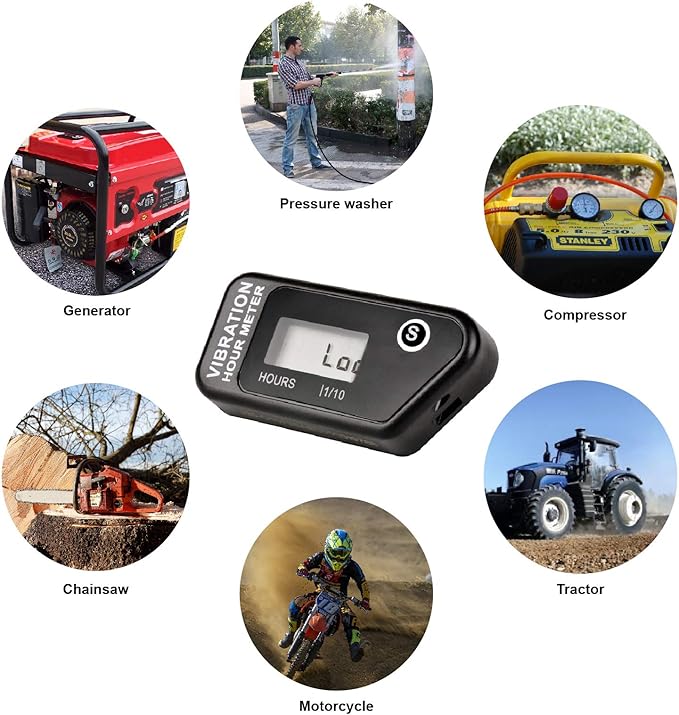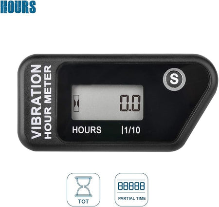 ORE: attiva e visualizza il tempo di utilizzo del motore / macchina (TOT) quando si riceve la vibrazione, gestione del programma di manutenzione ordinaria (come il cambio dell'olio) tramite il timer PAr, lettura dei tempi fino a 99.999 ore.